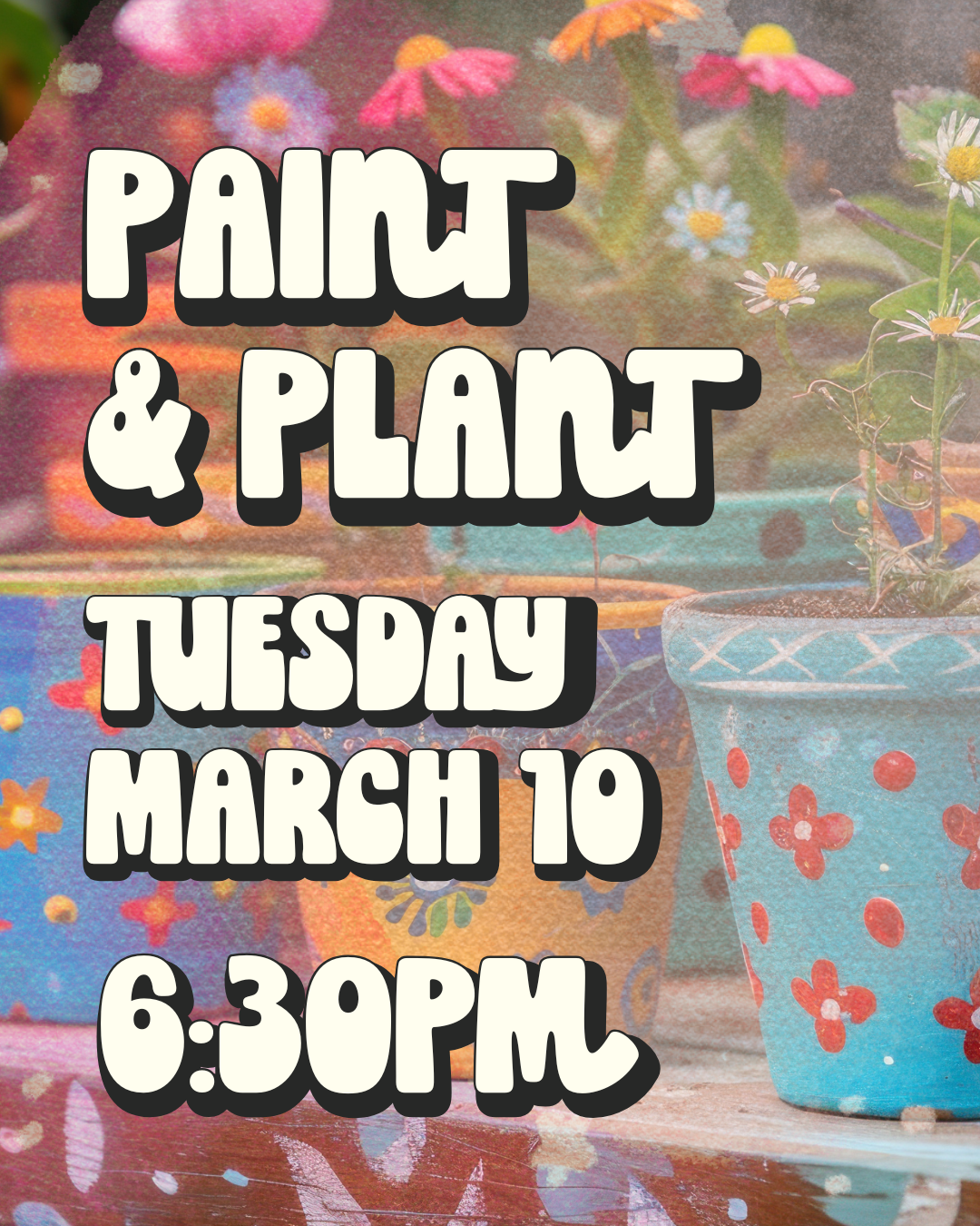 Get creative and a little messy (the fun kind)! Join us for a laid-back evening of painting your very own 6" plant pot, then pick a plant to tuck inside and take home. ✨