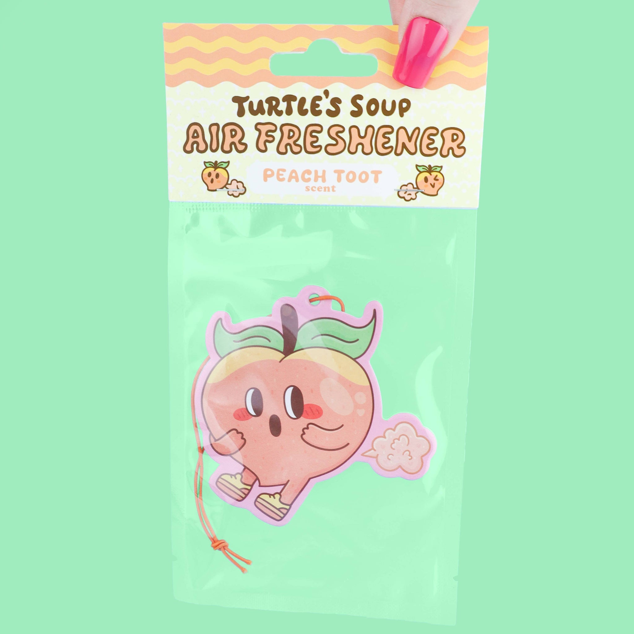 Perfect for cars, closets, lockers, or anywhere that could use a pop of peachy goodness.