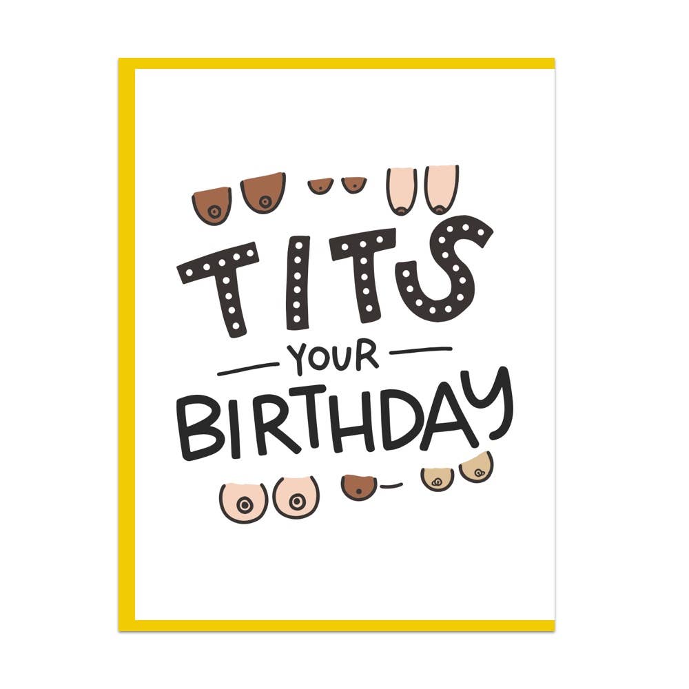 Say it loud, say it proud—Tits your birthday! This absolutely hilarious greeting card features playful illustrations of boobs in all shades, making it the perfect choice for birthdays that deserve a little sass and a lot of laughs.